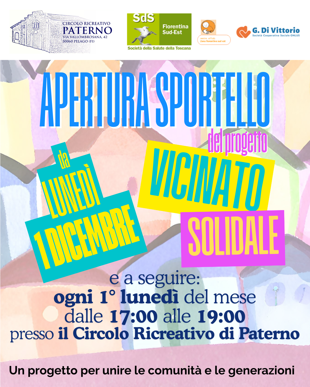 Apre oggi al Circolo Ricreativo di Paterno lo sportello informativo del progetto “Vicinato Solidale”, promosso dalla Società della Salute Fiorentina Sud-Est per favorire una comunità di vicinato inclusiva e solidale.