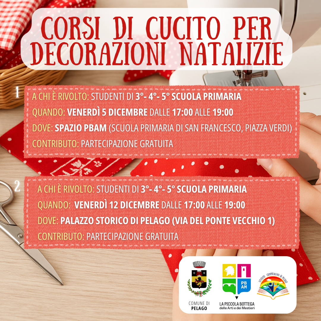 Il Comune di Pelago propone due laboratori creativi di cucito, pensati per gli alunni delle classi 3ª, 4ª e 5ª della scuola primaria.
